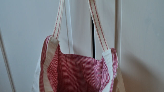 Malo sam modificirala osnovni dizajn – ja sam dodala džepić na prednjoj strani umjesto ukrasne mašne. Također sam umjesto ručki od tkanine provukla traku za rolete. Eto malo i reciklaže – iako sam ju točno s ovom namjerom kupila. Mogu reći da je izvrsna, lagana je i lako se prošiva.
